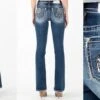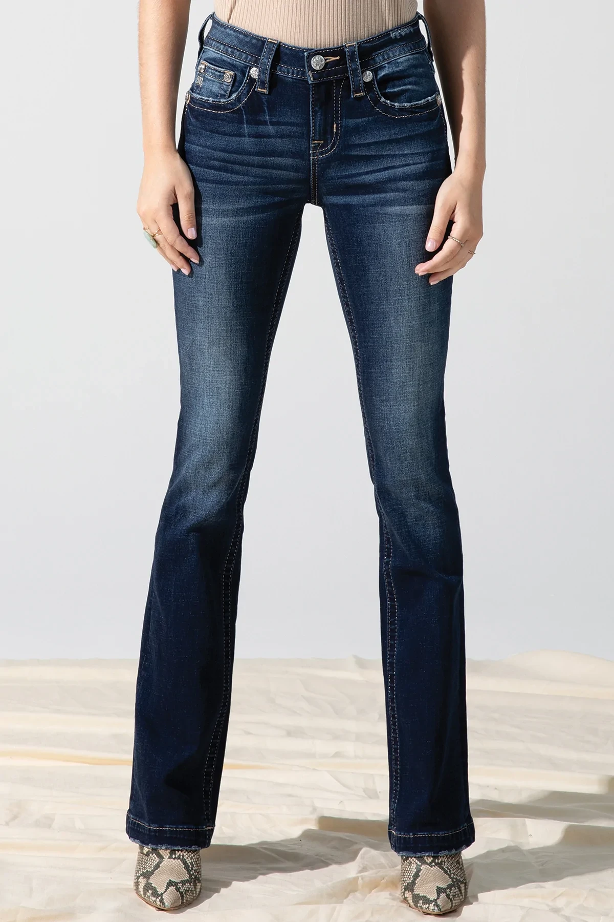 Miss Me Women’s Dark Wash Mid Rise Wing Design Jean