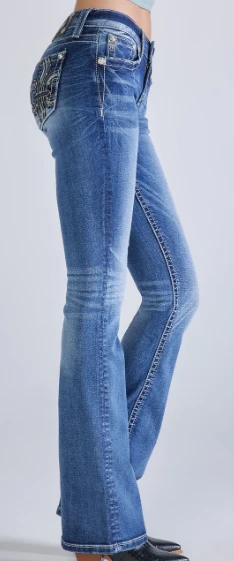 Medium Wash Fleur Life Low Rise Bootcut Jean.